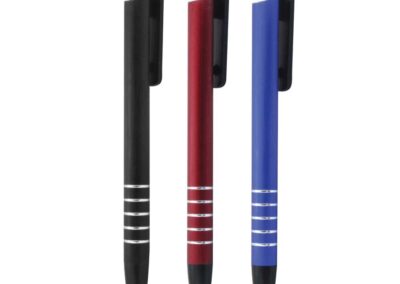 Metal and plastic were used in its creation. The bright metal barrel of this multipurpose pen is its main feature. Three distinct colors are offered for this metal barrel. Red, blue, and black are among the colors. It has a barrel, a clip, and a black tip in addition to that.