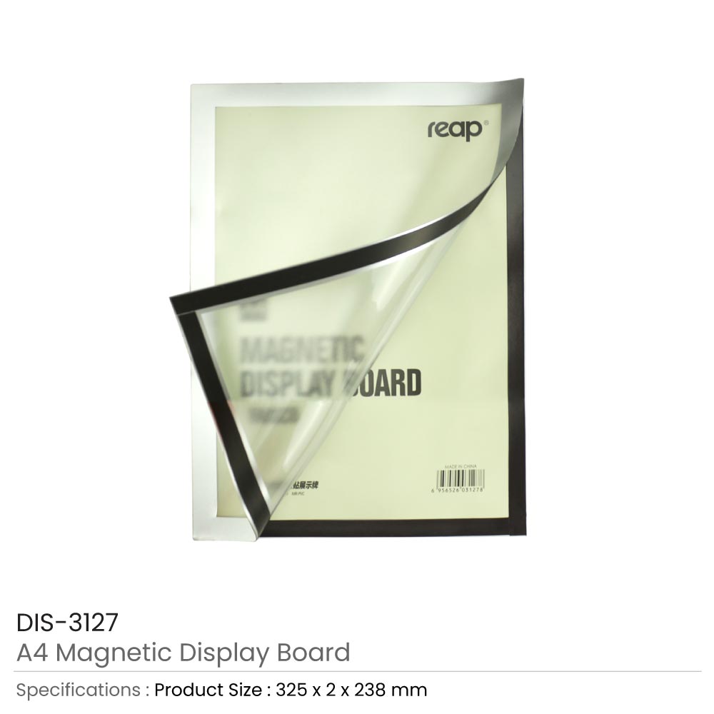 The board features a magnetic surface, enabling easy attachment and removal of documents, notes, and other items. With its sleek and professional design, the A4 Magnetic Display Board is an efficient and effective way to keep important information in one place.