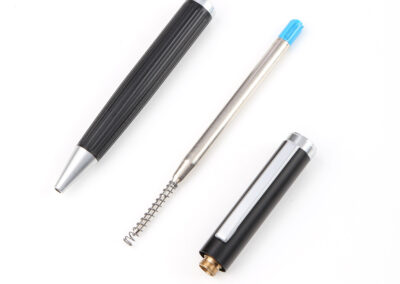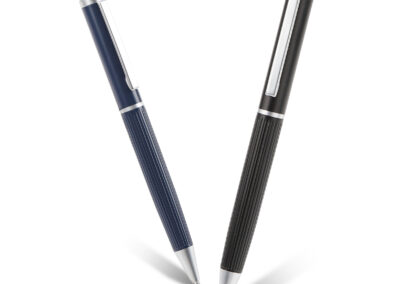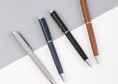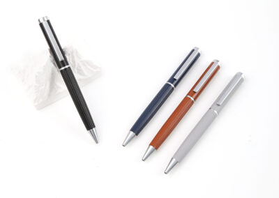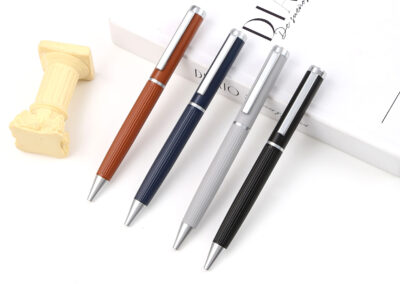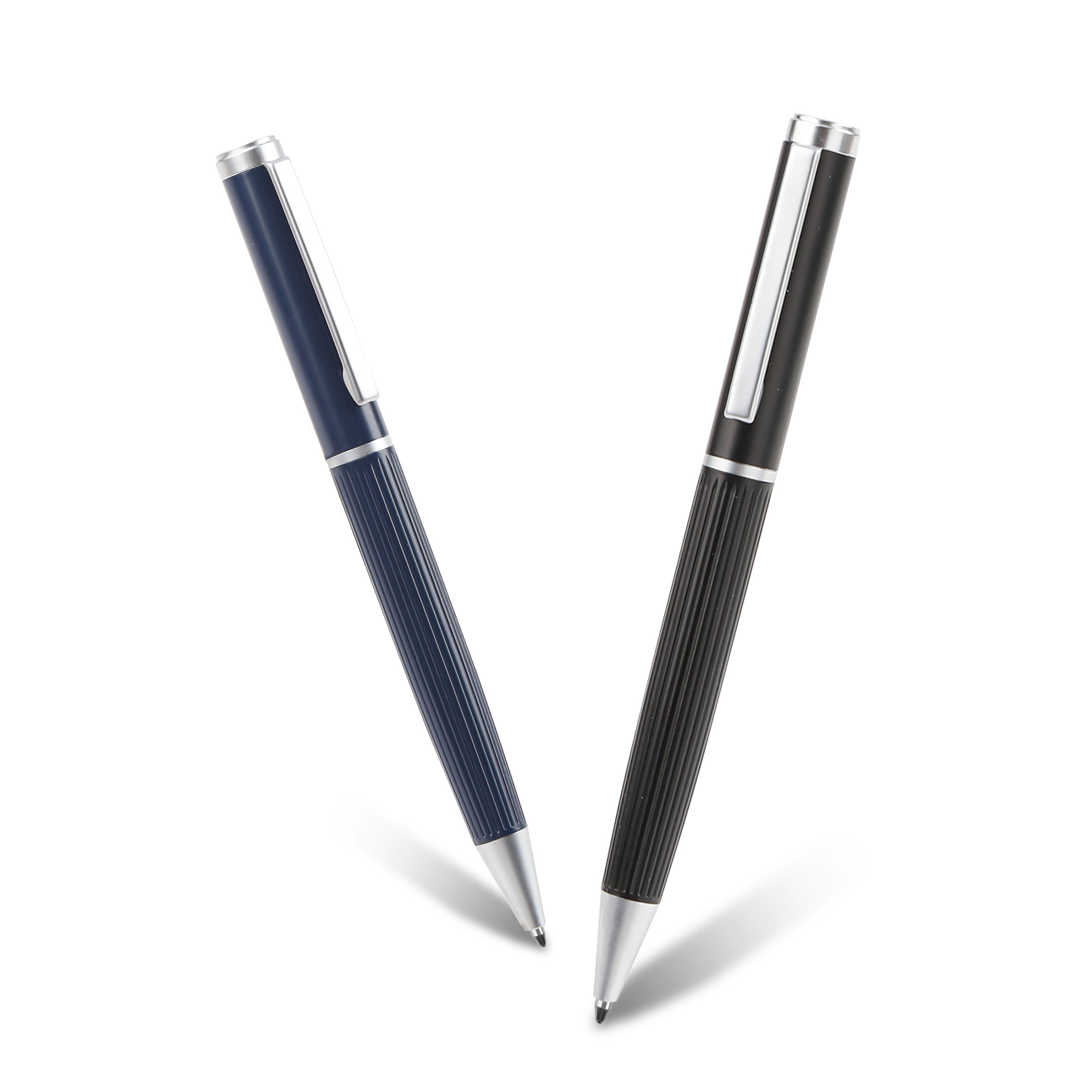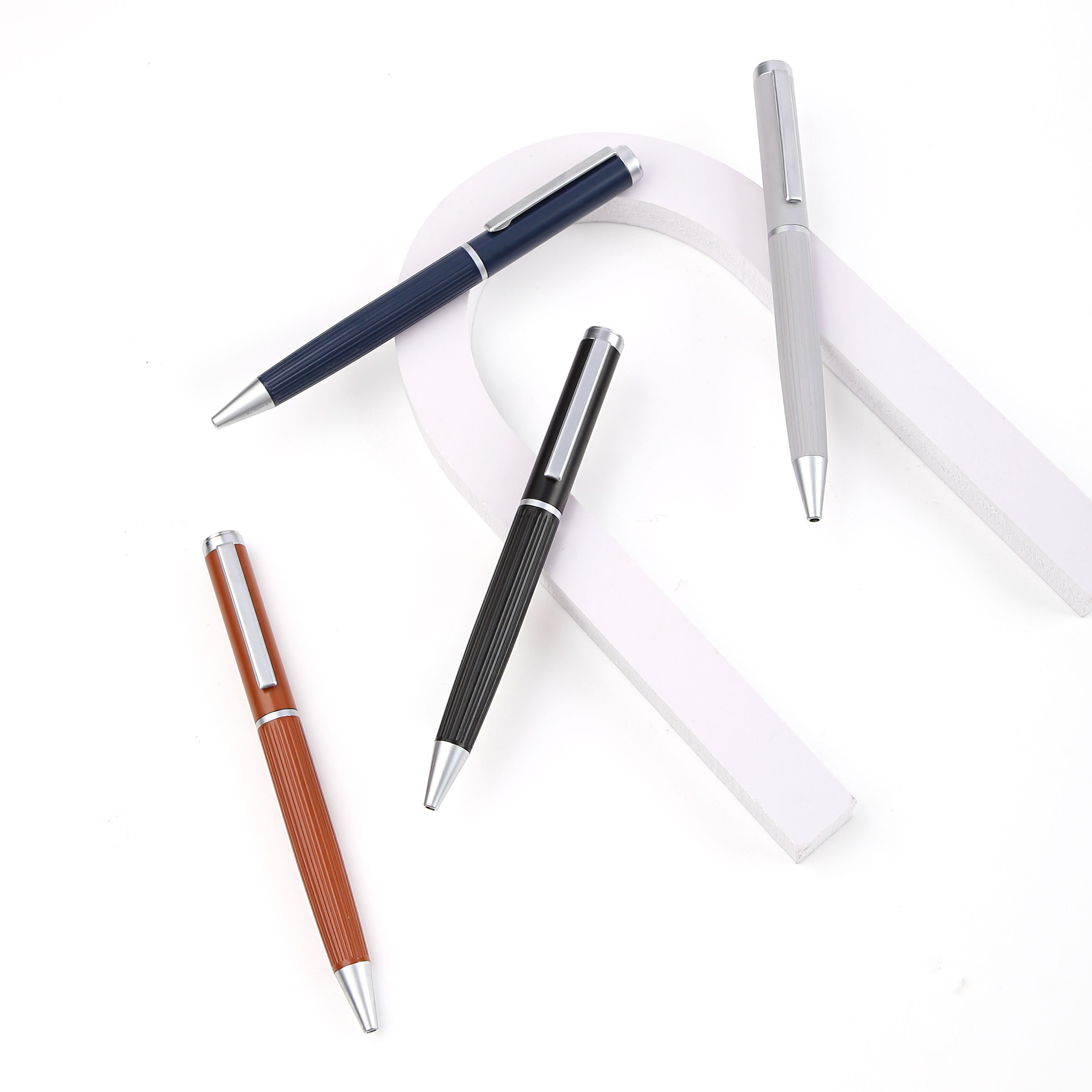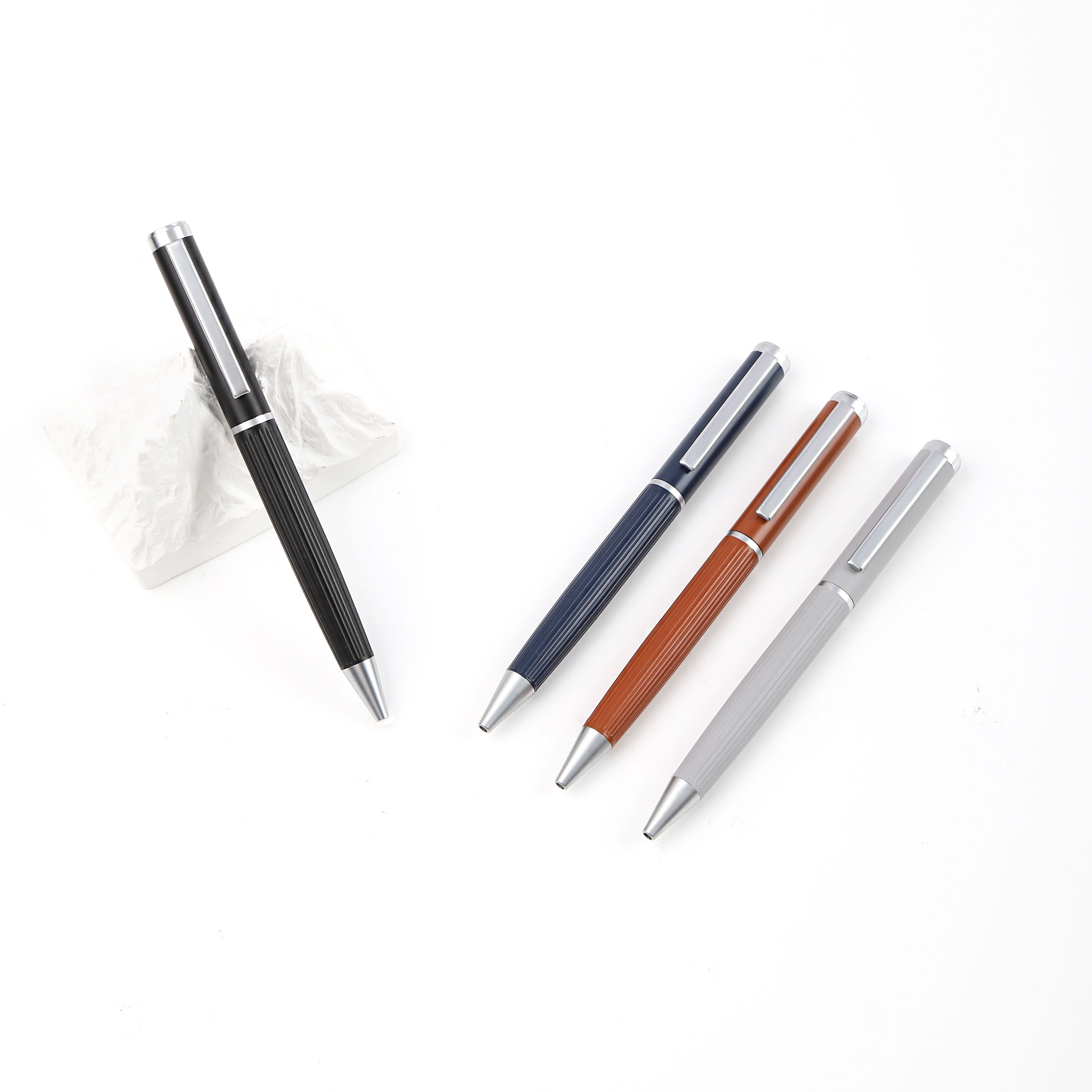 Metal pen with corrugated design on the body. Product Size: 13.8×1.15cm Diameter. Packaging: Polybag