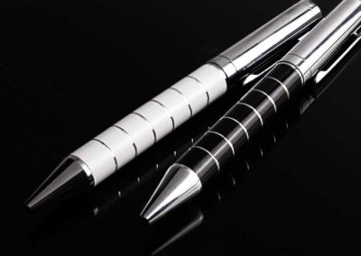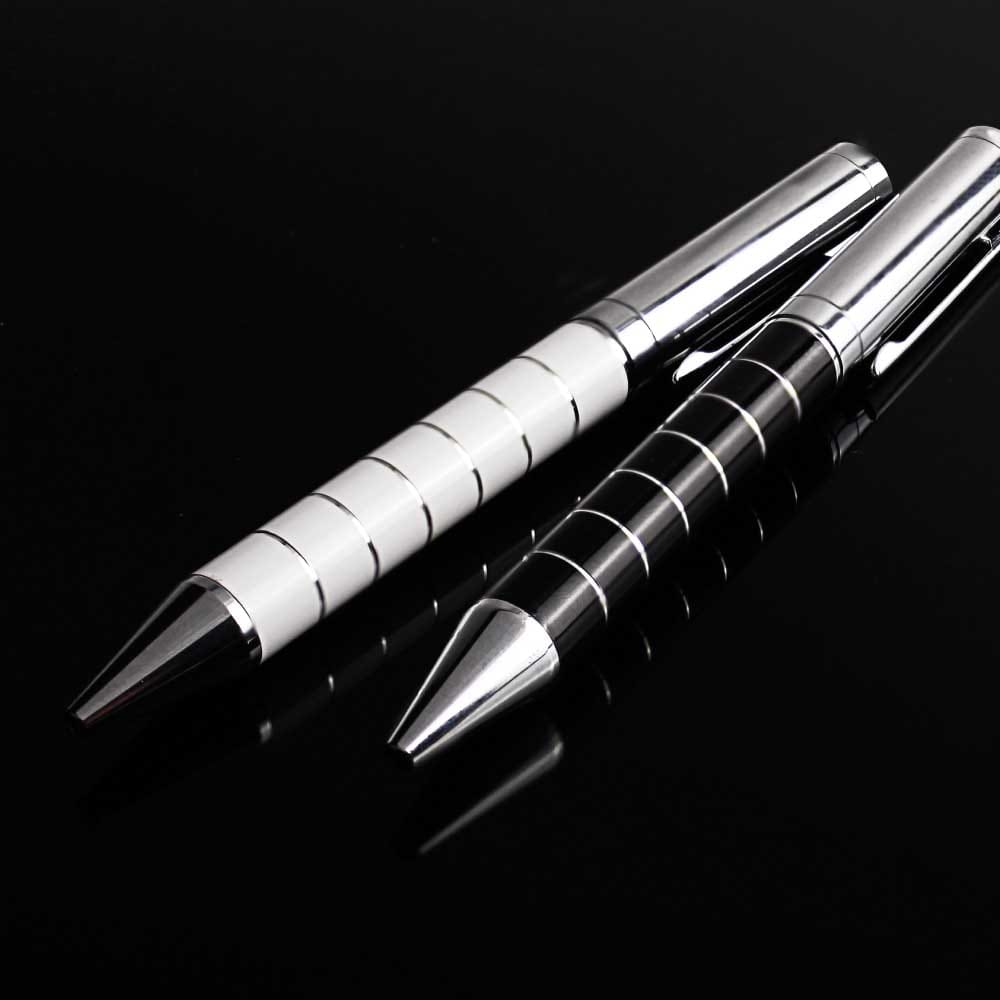 Amabel’s metal pen design was made of gleaming metallic material. Because of this, it is both glossy and sturdy. This pen’s barrel is constructed of a colorful metal. This metal barrel is made up of two halves.