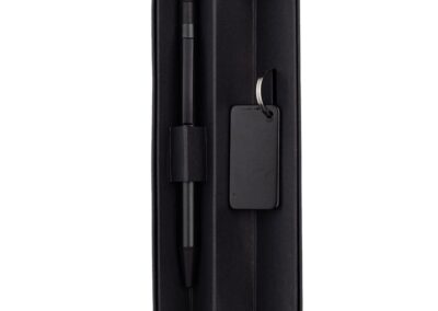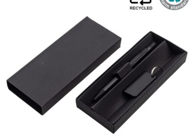 Gift Set of RCS-certified Recycled Aluminium Ballpoint Pen and Keychain. Packing in a paper gift box