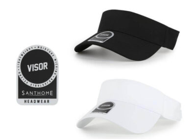 Santhome Apex is a performance visor made from lightweight athletic fabric with our proprietary DryNCool® moisture-wicking technology. Adjustable velcro. Made from 95% polyester and 5% spandex.