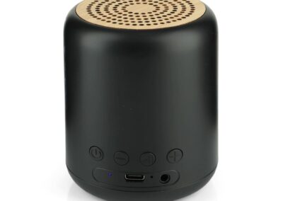 Asperg is a CHANGE Collection Recycled (RCS-certified) Bluetooth 5W Wireless Speaker, made from certified recycled plastic and sustainable FSC-certified bamboo. The wireless speaker uses BT 5.1 for super smooth connection and long lasting play-time. The built-in 1,200 mAh lithum battery allows a play time up to 6 hours. Operating distance up to 10 metres. With mic and pick up function. Packed in recycled kraft gift box. This speaker contributes 3% of sales to Water.org – a global NGO that provides millions with access to safe water and sanitation. By giving to Water.org, you are giving a GIFT THAT GIVES BACK.