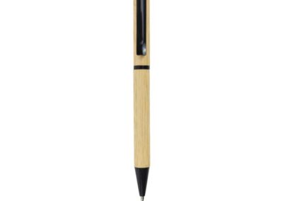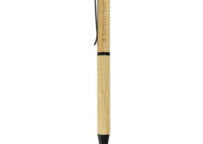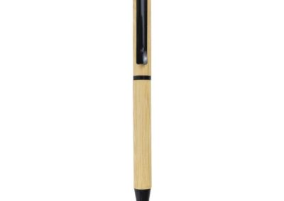 Twist Action Bamboo Ball pens with black color Metal clip, ring, and tip.