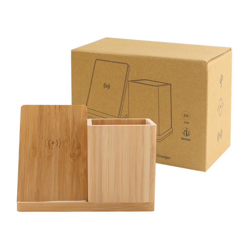 Compared to wired chargers, bamboo pen holders with wireless chargers are more fashionable. But this product is distinct from others. A special promotional item is the bamboo pen holder and wireless charging pair. Because it is renewable and sustainable, bamboo has traditionally been considered an environmentally benign material.