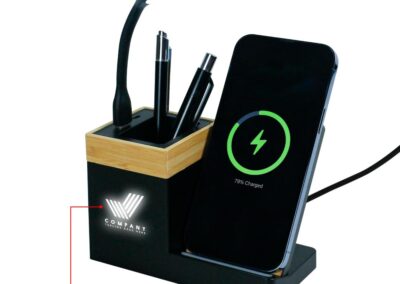 Organize your workspace in style with our Desktop Pen Holder Charger featuring a built-in 15W Wireless Charger and LED Logo. Designed to streamline your desk setup, this multifunctional accessory combines practicality with modern convenience.