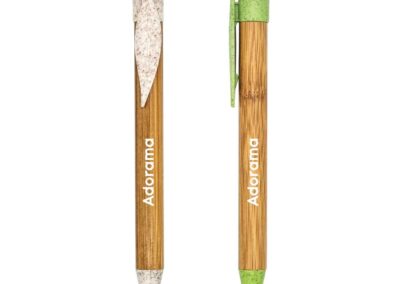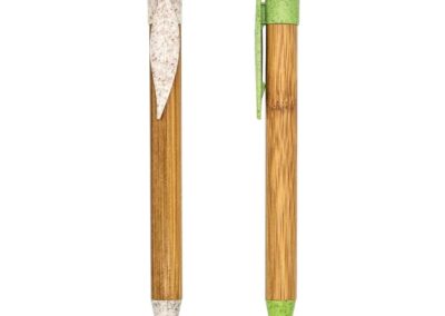 Bamboo and wheat straws were combined in a novel way to manufacture bamboo pens. The mixture of natural materials works well. This makes the bamboo pens ideal natural writing instruments. The barrel of this environmentally friendly pen is constructed of authentic bamboo.