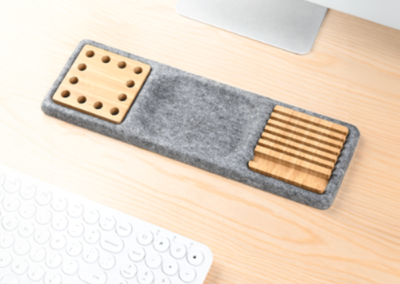 Pen, Phone and tray organizer in one. Desktop item in Recycled Felt+Bamboo-RCS material. Product Size: 34x11x2cm. Packaging: Kraft Paper Box