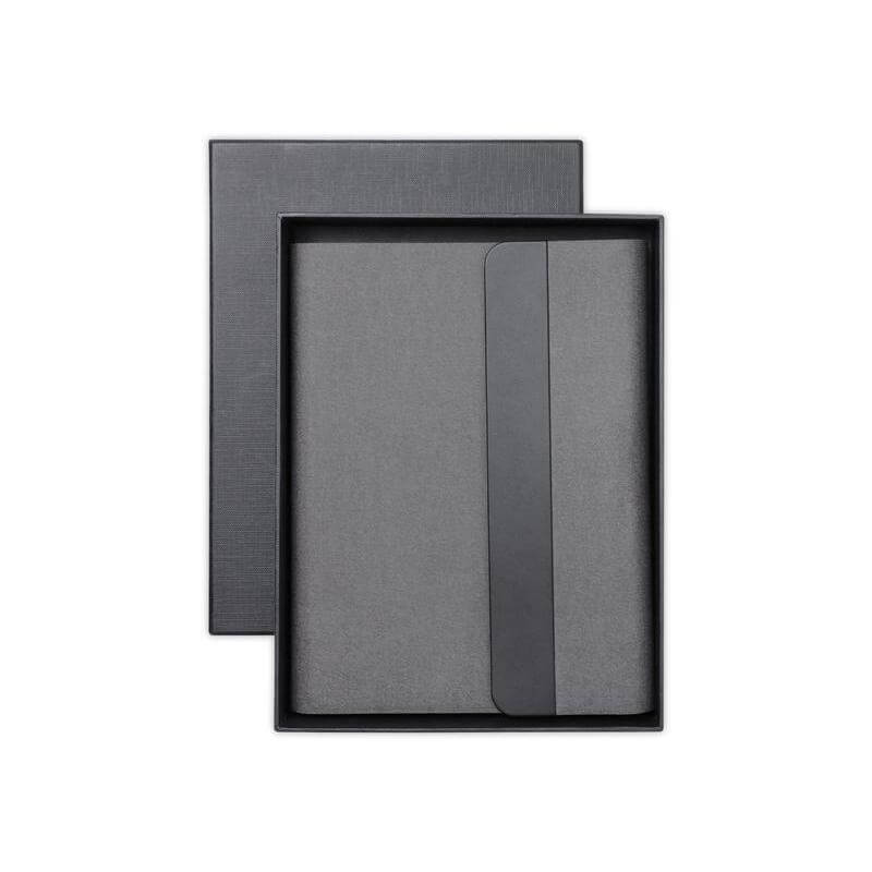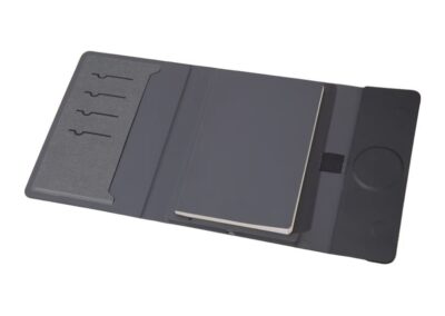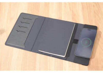 This innovative notebook portfolio doubles as a 10,000mAh magnetic – compatible wireless power bank, offering 15W wireless magnetic charging for your devices on the go. Made from RCS-certified recycled PU, it features 64 sheets refillable notebook of 100g paper for smooth writing, a pen loop and multiple card slots, combining functionality and organization with sustainability. Elegantly packaged in a premium gift box, it’s the perfect blend of tech and stationery for work, travel, or gifting.