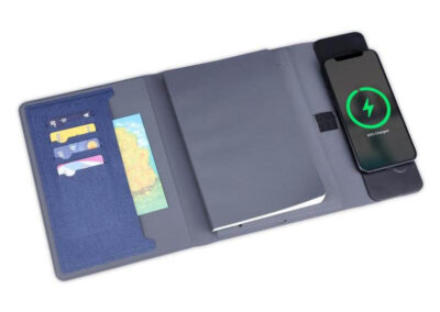 This innovative notebook portfolio doubles as a 10,000mAh magnetic – compatible wireless power bank, offering 15W wireless magnetic charging for your devices on the go. Made from RCS-certified recycled PU, it features 64 sheets refillable notebook of 100g paper for smooth writing, a pen loop and multiple card slots, combining functionality and organization with sustainability. Elegantly packaged in a premium gift box, it’s the perfect blend of tech and stationery for work, travel, or gifting.