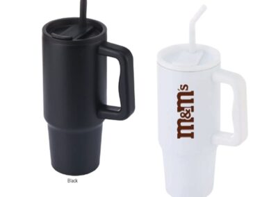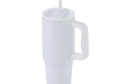 Bern is a recycled stainless steel tumbler with reusable stainless steel straw and a rotating lid cap for easy drinking. It is made of 70% GRS-certified recycled stainless steel. Commuting, studio workouts, or day trips, you’ll want this tumbler by your side! The ergonomic handle includes comfort-grip inserts for easy carrying, and the narrow base fits just about any car cup holder. Keeps drinks hot for 5 hours and cold for 15 hours. Contents: 900ml. Packed in a kraft box.
