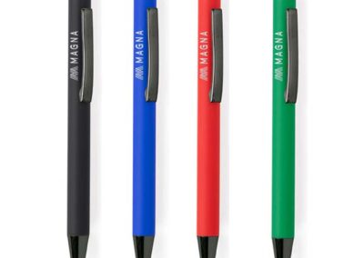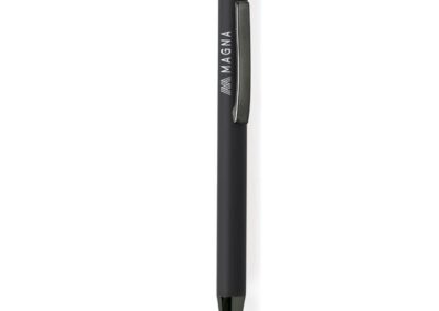 Anti-Microbial Metal Ballpoint pen with soft rubberized finish and matt gun metal trims. Especially designed for laser engraving, including a special coating for your logo. With 1200 m writing length and German Dokumental® Ink.