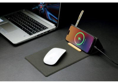 Memorii® Folding Wireless Mousepad & Desk Organizer is an elegant and compact desk accessory made from RCS-certified recycled PU. It includes a 15W wireless charger and phone stand with a bamboo stopper, mousepad and pen stand. Folds flat and can be easily carried on the go. Blace is a CHANGE ZERO product, which means that it is developed with a net zero carbon footprint – By using RCS-certified recycled PU materials, we reduce 14% carbon emissions from material use (verified by ecoact®). Further, we offset the balance 1.08 kgCO2eq per unit by financing renewal energy projects through Climate Partner, making it a carbon-zero product. Packed in an elegant gift box.