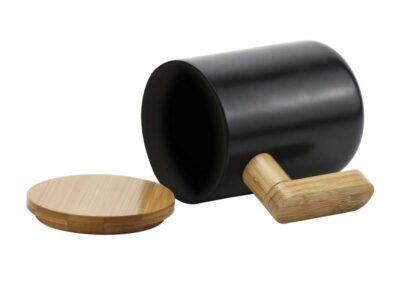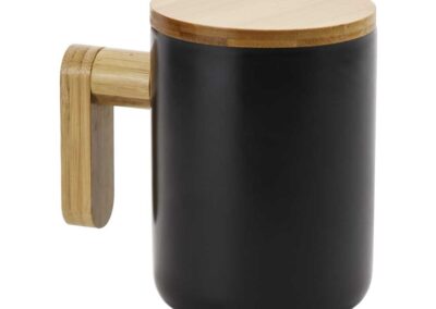 Black Ceramic Coffee Mug with Bamboo Handle and Lid. Matt oil Black finish with 380ml Capacity.