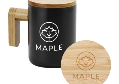 Companies who are searching for a practical and environmentally friendly solution will find the Black Ceramic Mug with Bamboo Parts to be an excellent choice for a corporate present. The bamboo is used for both the handle and the lid, while the exterior of the mug is composed of a sleek black porcelain material. This unconventional combination of materials results in a modern and stylish appearance that is adaptable to a variety of different workplace layouts.