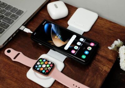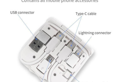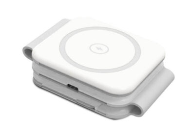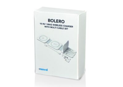 Bolero is a unique design of foldable dual wireless charger and in-built multi-cable set. The dual chargers provide 15W magnetic wireless charging for mobile phones and 3W wireless charging for compatible wireless charging Smart Watches or Bluetooth Earpods. Additionally, the multi-cable set includes USB, Micro, Type-C and Lightning connections with an ejector pin and SIM card slots for all your essential travel requirements. Portable and packed in a gift box.