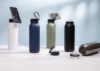 Stay hydrated and connected with the BOTELLA PRO, your ultimate 900ml drink buddy on the go! This versatile bottle is designed for convenience, featuring a magnetic phone loop that allows you to use it as a mobile stand wherever you are. The wide opening makes it easy to clean and accommodates ice for those hot days. With a sleek design and portability, the BOTELLA PRO is perfect for outdoor adventures, gym sessions, or daily commutes. Measuring 25.35 x 8.45 cm in diameter, this bottle is not only functional but also stylish. Packaged in an attractive paper box, it makes for a great gift or personal accessory.