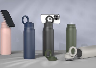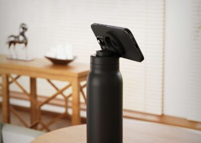 BOTELLA ULTRA, a durable and eco-friendly water bottle designed to fit seamlessly into your active lifestyle. Crafted with a recycled 304 stainless steel inner wall and 201 stainless steel outer shell, this water bottle offers exceptional durability combined with environmental responsibility. Featuring an integrated MagSafe-compatible phone holder, it ensures your device stays securely within reach, making it perfect for multitasking during workouts, travel, or daily routines.