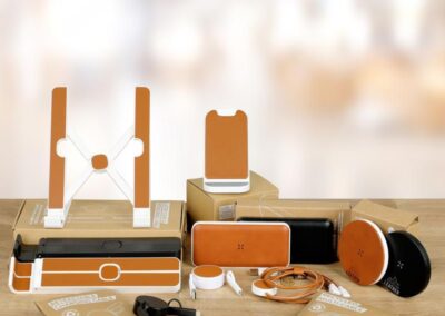 Brela is a set of RCS-certified recycled laptop stand and 6-in-1 recycled retractable charging cable set perfect for your daily work. The laptop stand is made of 94% recycled ABS and recycled PU and has a foldable function that allows different angle laptop adjustments for better comfort and use. Perfect pair to the laptop stand is the retractable 6-in-1 charging cable which is made of 29% recycled ABS and recycled PU. It extends up to 100CM in length and has a USB-A and Type-C input and 2-in-1 (micro-USB & lightning) and Type C output. Packed in a recycled kraft gift box.
