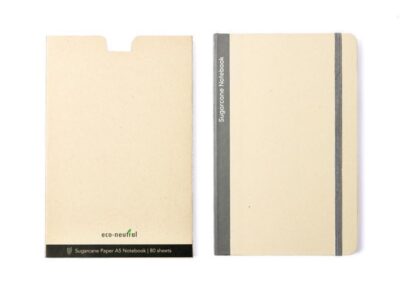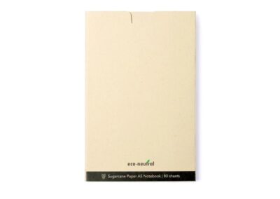 A natural notebook that is entirely made from sugarcane. The pages and cover are both made from sugarcane pulp – a waste material produced during sugarcane cultivation and an excellent chemical-free alternative to traditional wood-based paper. The notebook features 80 sheets/160 pages of cream colored pages of 80 gsm