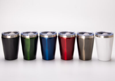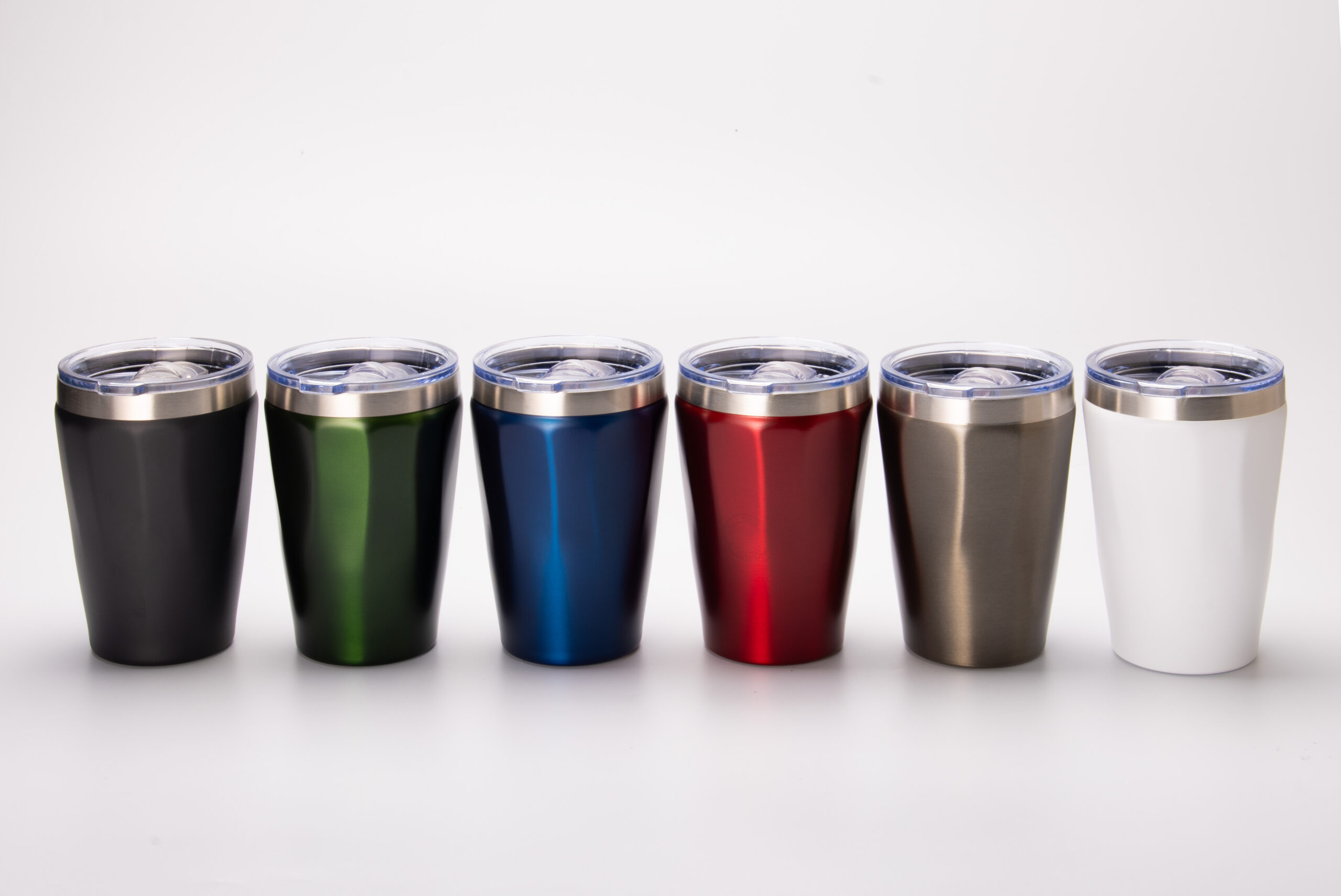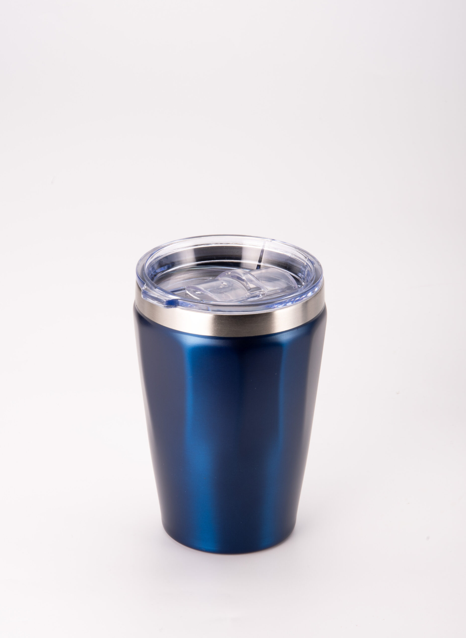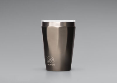 CALYPSO TUMBLER PRO, a stylish and eco-friendly double wall mug designed for all your hot and cold beverage needs. Crafted from recycled stainless steel, this tumbler features a unique geometric shape that not only looks modern but also enhances insulation, keeping your drinks at the perfect temperature for longer.With a size of 13 x 8.8 cm (diameter), the CALYPSO TUMBLER PRO is perfect for coffee, tea, smoothies, or any beverage you desire. Its durable construction ensures that it can withstand daily use while being environmentally conscious. Packaged in a kraft paper box, this tumbler makes an excellent gift for eco-conscious friends, family, or colleagues.