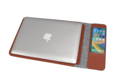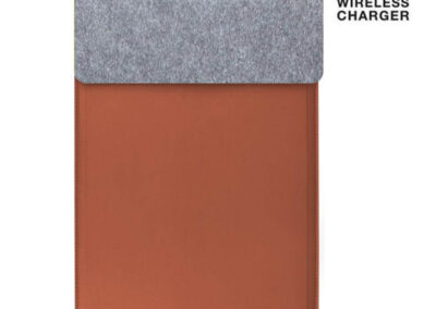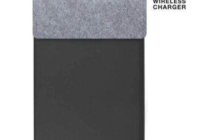 CAMDEN is a sleek and minimalist 14″ laptop sleeve with in-built 15W magnetic wireless charger. It is dual function and can also serve as a desk mat / mousepad for your office or home, which you can then pack a laptop inside and carry with you as a protective laptop sleeve. It is made from combination of felt and PU material, and can fit laptops up to 14″ in size. Packed in a gift box.