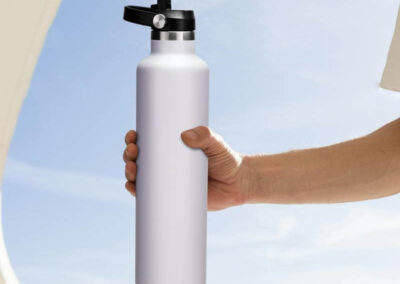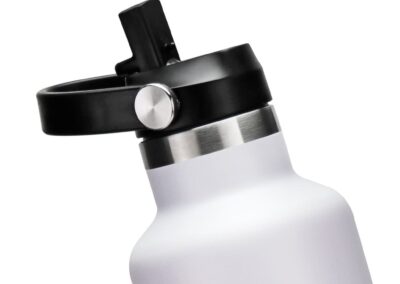 Cervo is a vacuum stainless steel water bottle with 1L capacity and fliptop sports lid + straw, making it perfect for sports or on-the-go activities. Made with double-walled vacuum insulated stainless steel with SS304 inside and SS201 outside. Keeps drinks hot for 6 hours and cold for 12 hours. With easy-to-carry handle. Powder coating finish. Packed in gift box