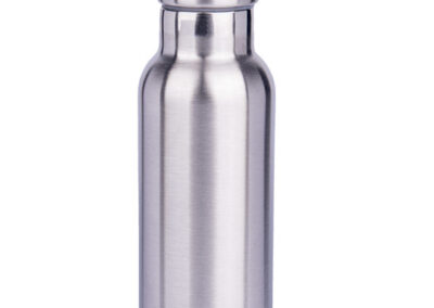 [WATER BOTTLE] Double wall stainless steel insulating vacuum flask with bamboo lid and carry handle. Capacity: 500 ml. Leak Proof Material- SS 304 Inside SS 201 Outside.
