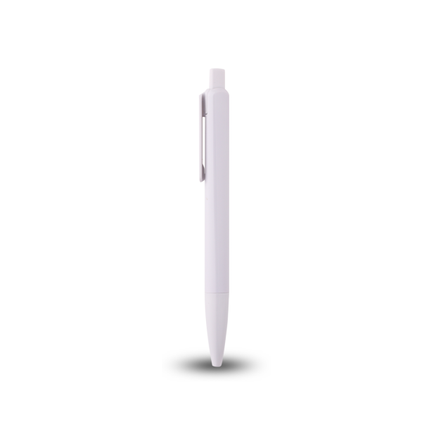 Push Type Antibacterial ballpen with solid white barrel, clip and button. 1.0MM blue ink. ISO22196 certified. Product Size: 14cm, 1.2cm diameter. Packaging: polybag