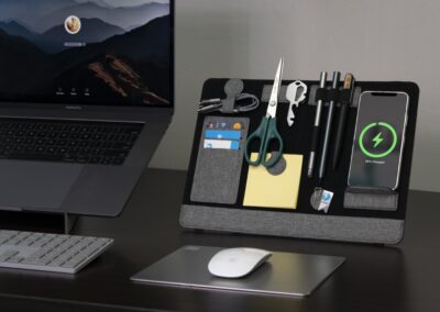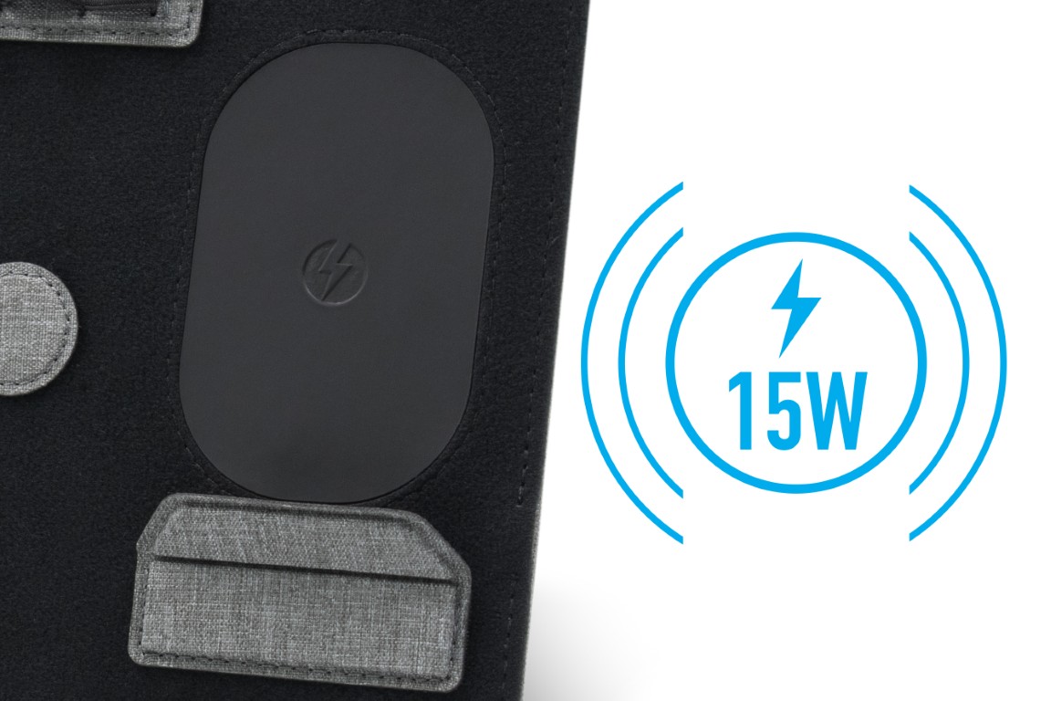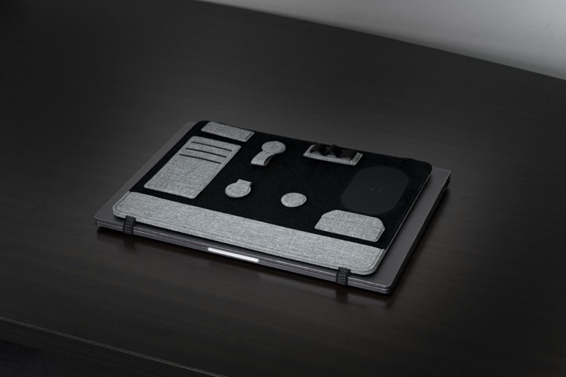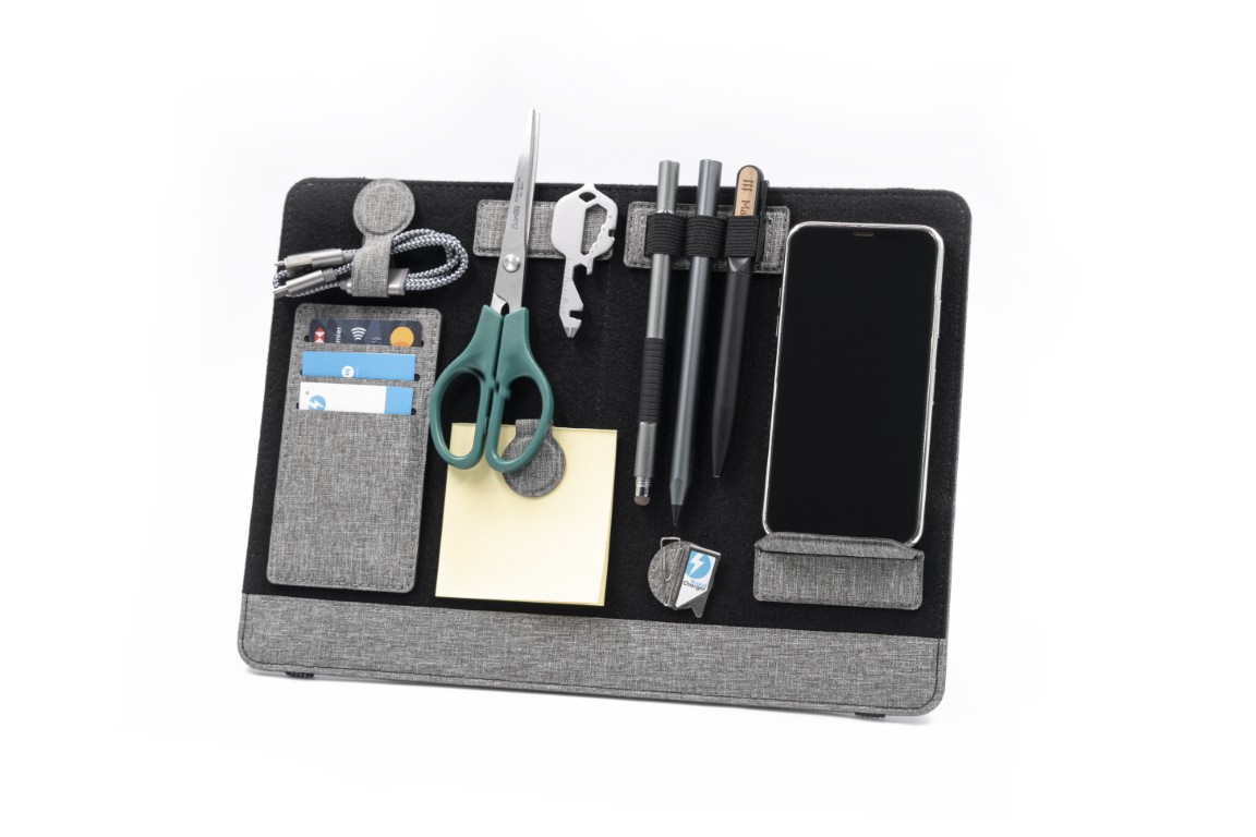 notebook, pen, pencil, mouse etc.) into its many pockets.