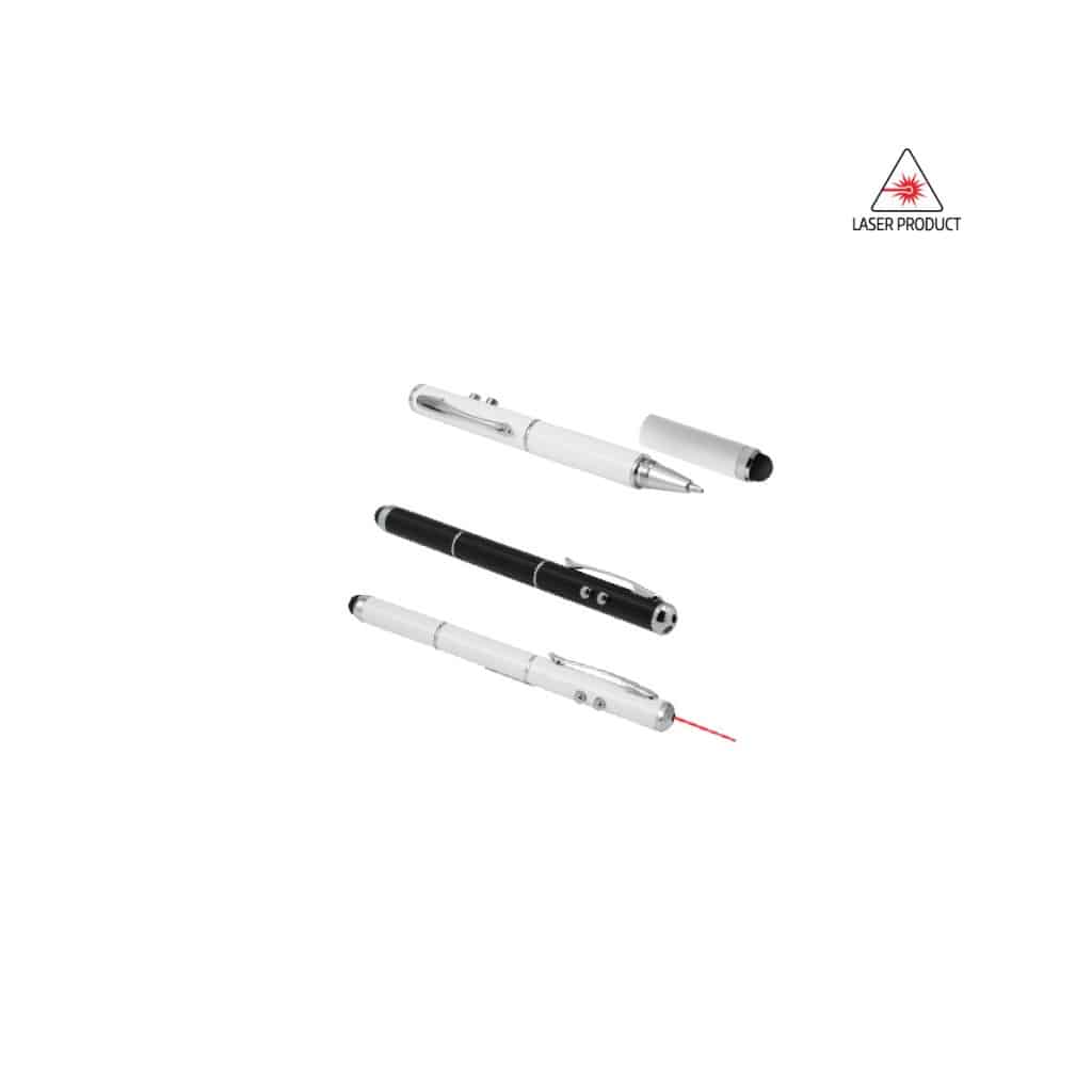 High quality 4-in-1 ball pen with stylus, laser pointer and a flash light packed in a gift box.
