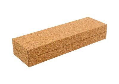 Size: 180 x 55 x 35 mm, A cork pen container with a rectangular shape and a black velvet interior.