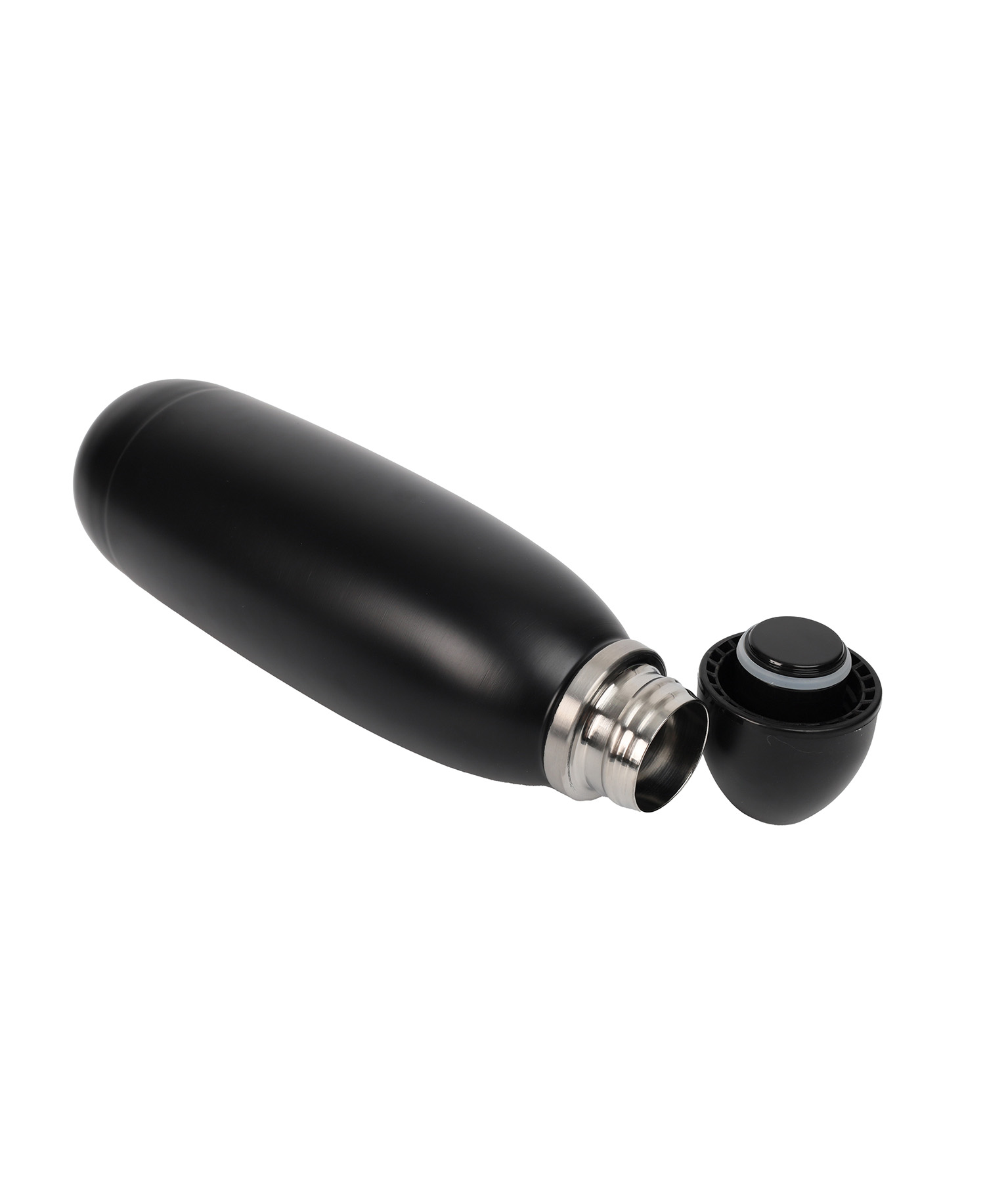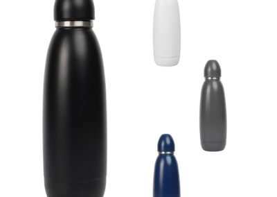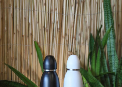 A double-walled flask made with recycled stainless steel featuring a food grade silicon ring making it leak-proof. It works as a vacuum bottle with a copper plating on the inside making it heat resistant.