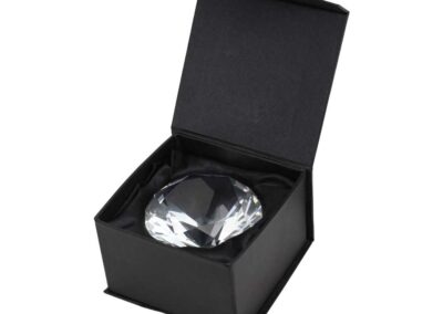 and logo engraved onto the face of the diamond and presented in a deluxe black gift box.