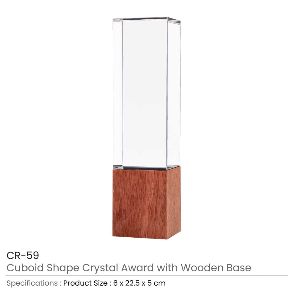 Material: Crystal and Wood | Item size: 60 x 50 x 228 mm | Weight: 1.800 kg, Cuboid-shaped crystal awards on a hardwood base are elegant and distinguishing mementos of acknowledgment and achievement. These awards combine the elegance of crystal with the warmth and natural beauty of wood to create a truly unique and timeless object.
