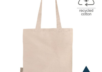 eco-neutral® Recycled Cotton Shopping Tote Bag with bottom gusset, certified by Global Recycled Standard (GRS). Made with 300GSM recycled cotton – a sturdy and durable fabric. This bag has saved 4,000 liters of water by substituting water-thirsty cotton fabric with recycled cotton. Make a conscious decision.