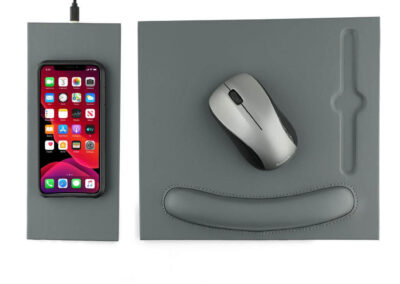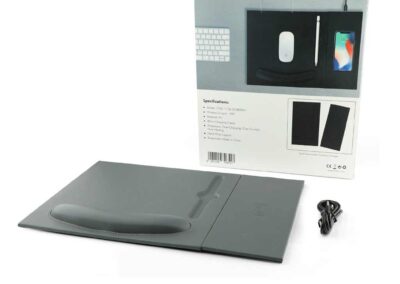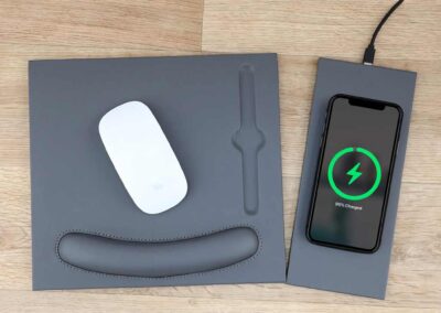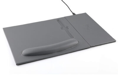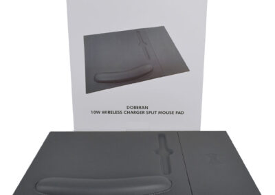 Doberan is a 2-in-1 mousepad with detachable and attachable 10W wireless charger pad. Using 2-sided magnets, the wireless charger pad can be detached and attached to the left or right side of the mousepad, providing a nice adaptability to left or right handed users. The mousepad has an in-built ergonomic wrist rest with cushioning. Packed in a gift box