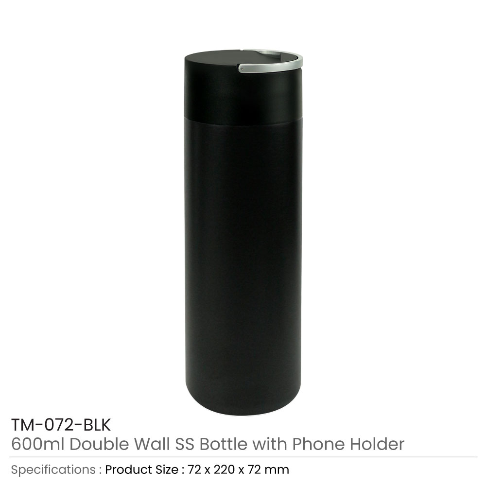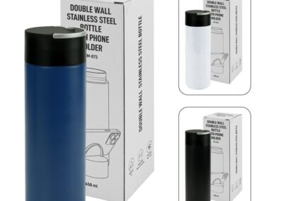 Stay refreshed and connected with our 600 ml Double Wall Stainless Steel Bottle with phone holder. Featuring a twist-off lid, integrated phone holder, and sleek design, it keeps your drinks at the perfect temperature while providing hands-free access to your phone. Ideal for on-the-go hydration and convenience.