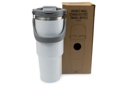 Stay refreshed on the go with this sleek and practical 900ml stainless steel tumbler. Built to last, it’s crafted from high-quality stainless steel with a double-wall vacuum insulation that keeps your drinks hot or cold for longer periods. The convenient flip-straw lid and carry handle make it the perfect choice for commuters, gym-goers, or anyone who needs hydration on the move.