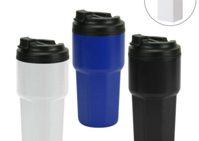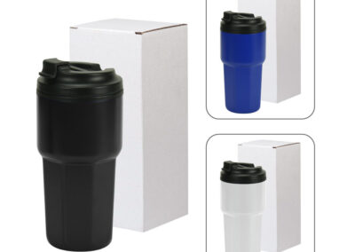 Double Wall Tumblers: Featuring a sleek stainless steel and polypropylene design with a convenient flip-top PP lid. These 473ml tumblers offer excellent temperature retention for both hot and cold drinks. Ideal for on-the-go hydration with a stylish, durable finish.