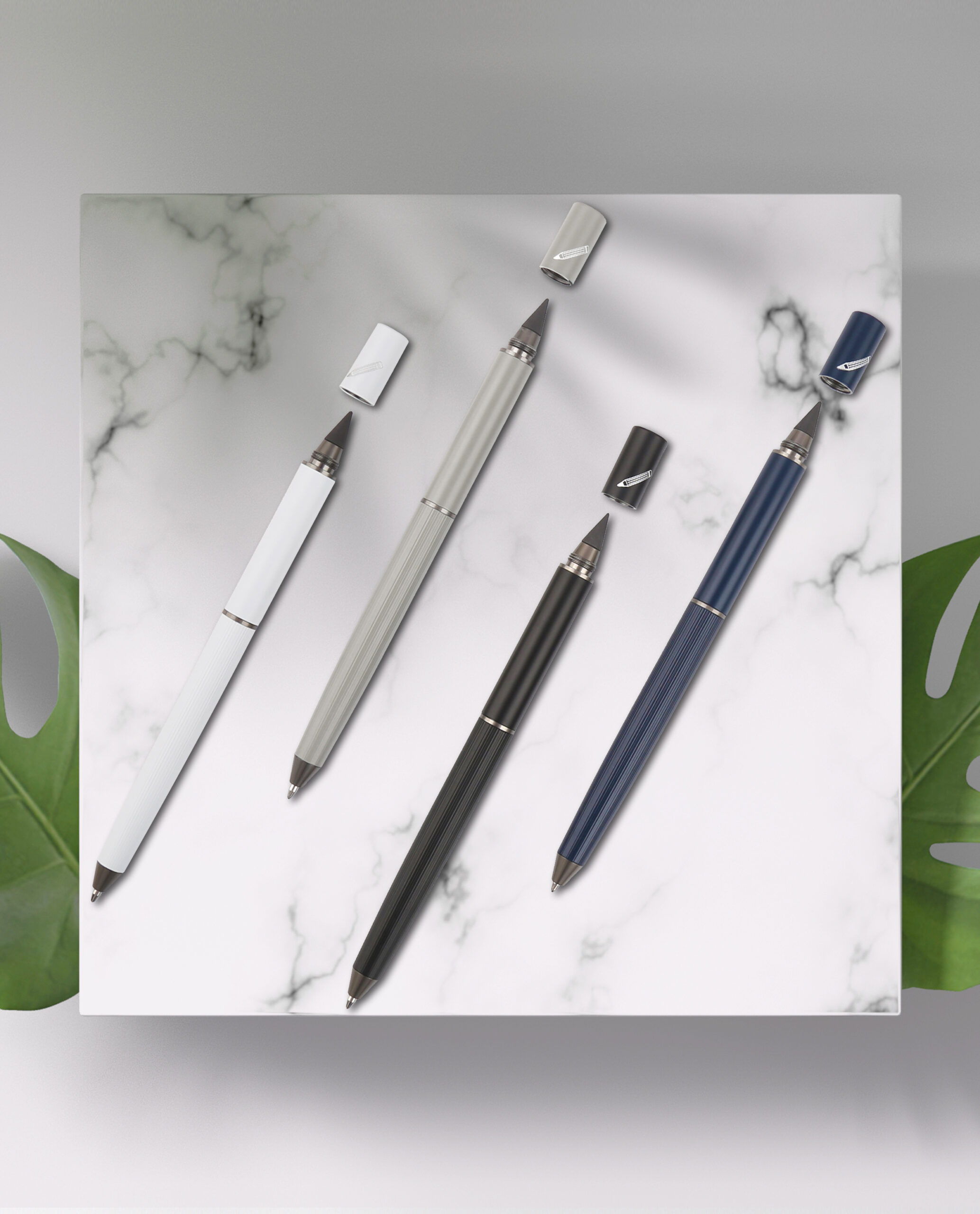 2n1 writing instrument with twist pen on one side and never ending pencil on the other side. Product Size: 14.5x1cm. Packaging: Polybag