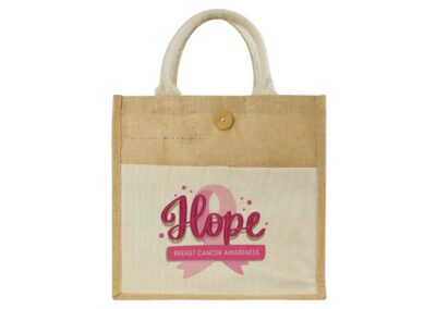 Carry with Purpose: Our eco-friendly jute bags, adorned with the Breast Cancer Awareness logo, combine sustainability with a powerful cause. Crafted from natural jute, these bags offer a durable and environmentally conscious alternative to plastic.