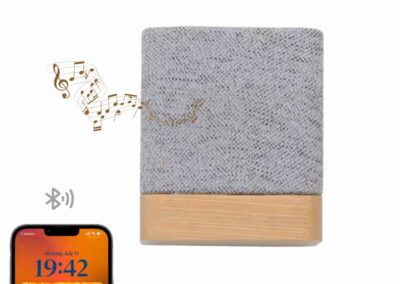An extremely portable and compact sustainable bluetooth speaker made of certified RPET & Bamboo!