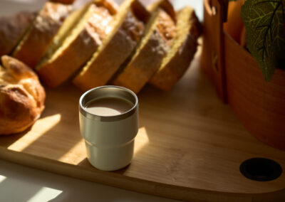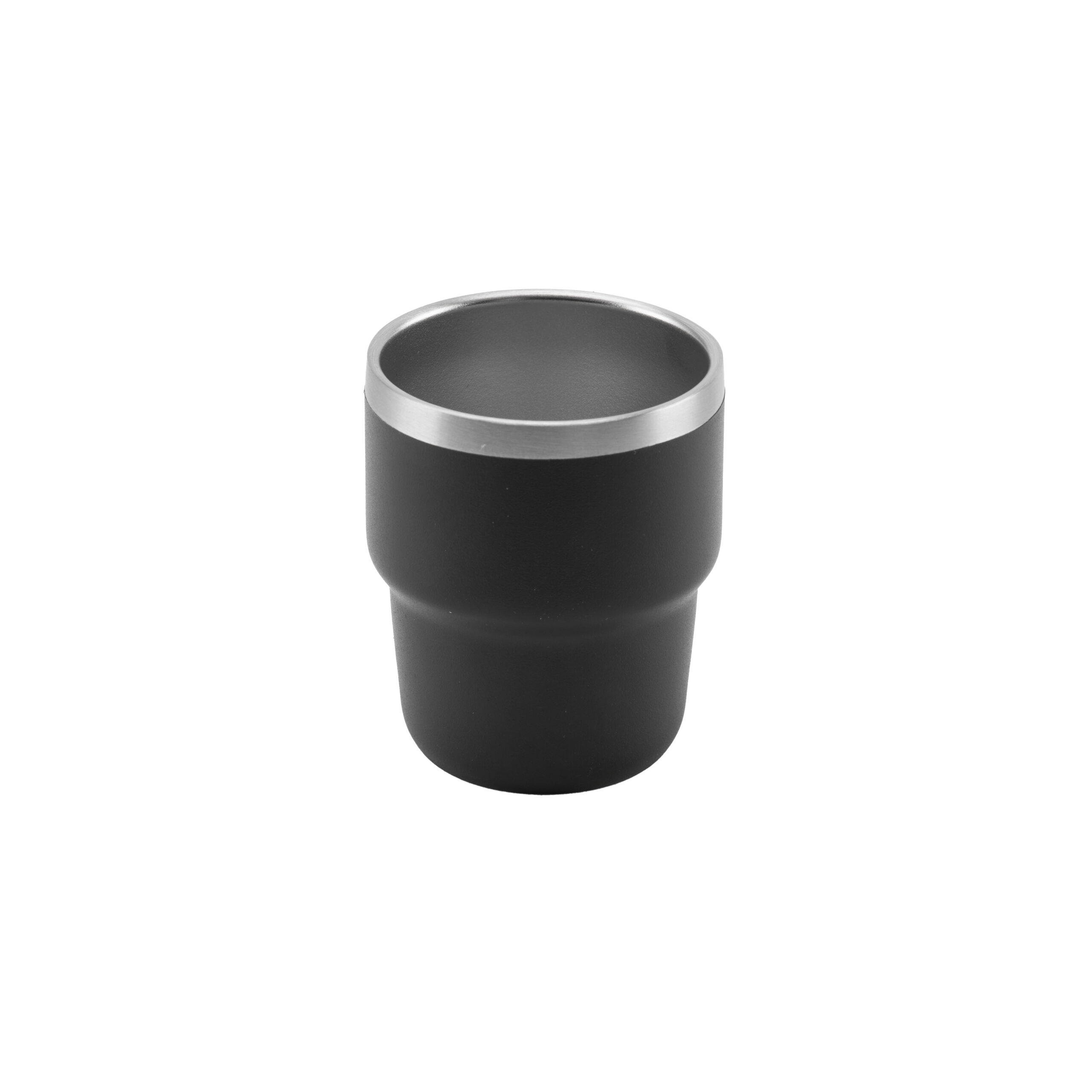 ESPRESSO STACKABLE cups, expertly crafted for style and functionality. Each 80ml cup features double-wall construction with a 304 stainless steel inner and durable 201 stainless steel outer, providing excellent heat retention and preventing burns. The sleek powder-coated finish delivers a modern aesthetic, while the silver-lined lid adds a touch of elegance and helps maintain your espresso’s temperature and freshness.