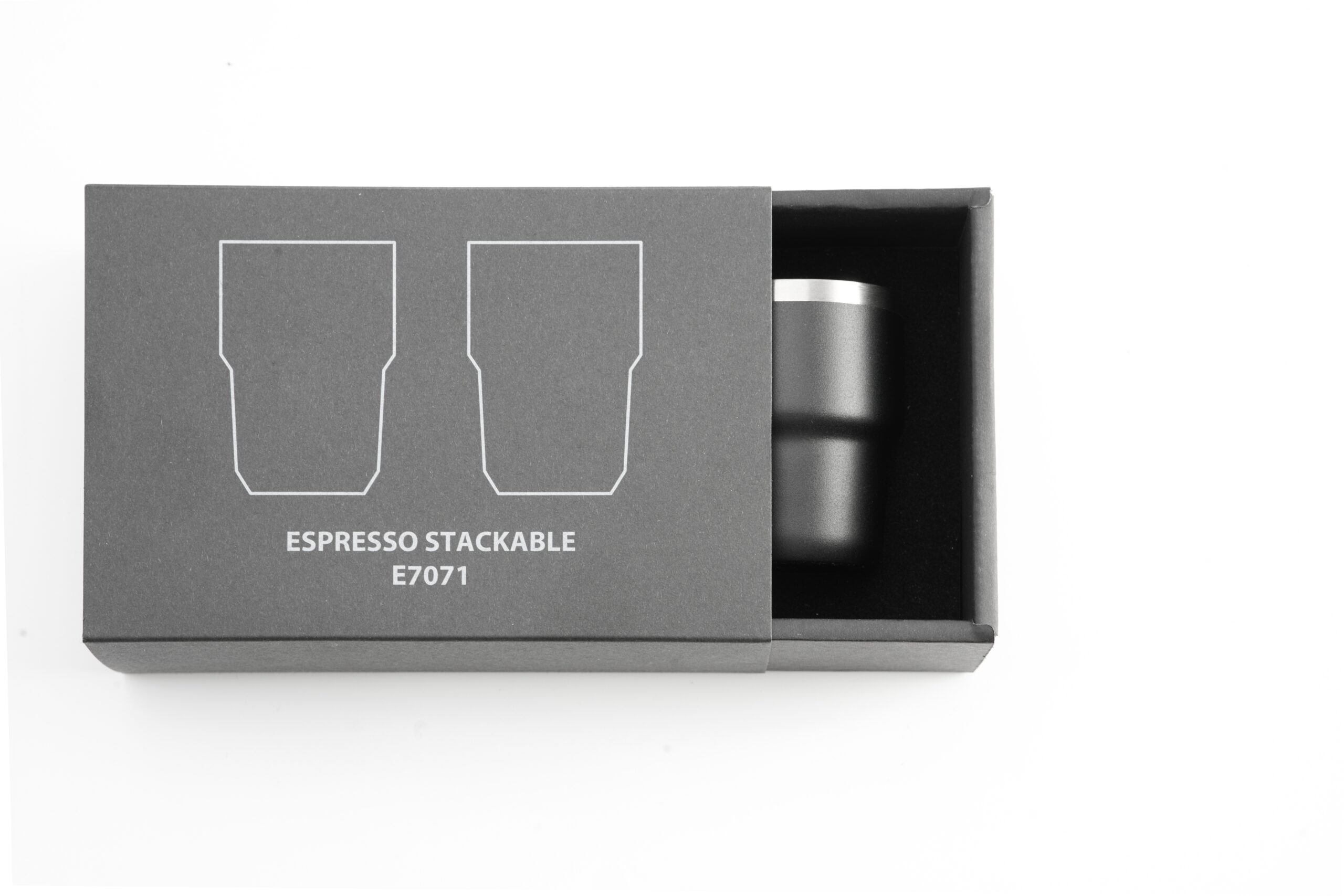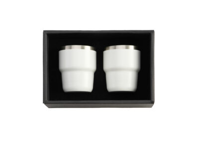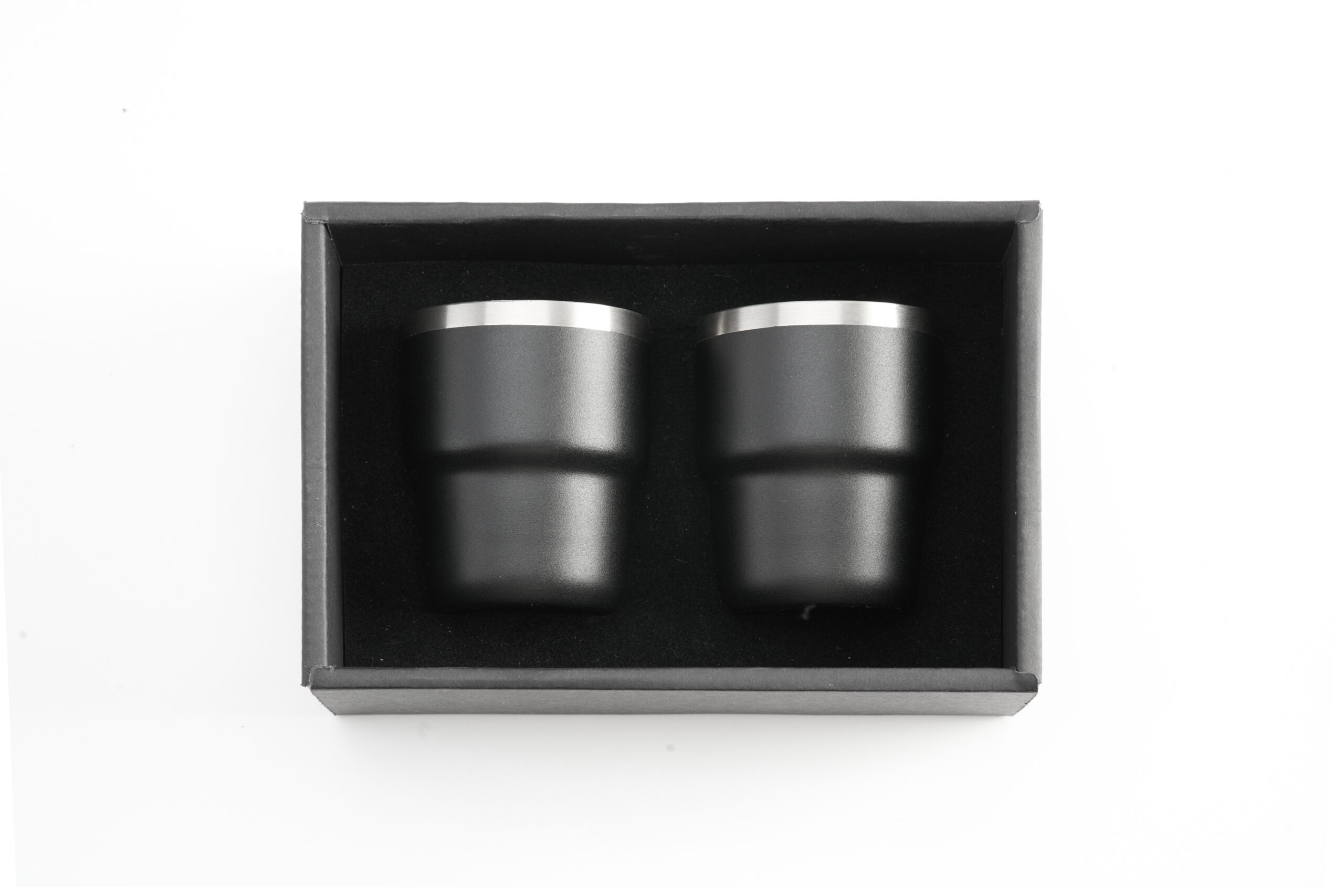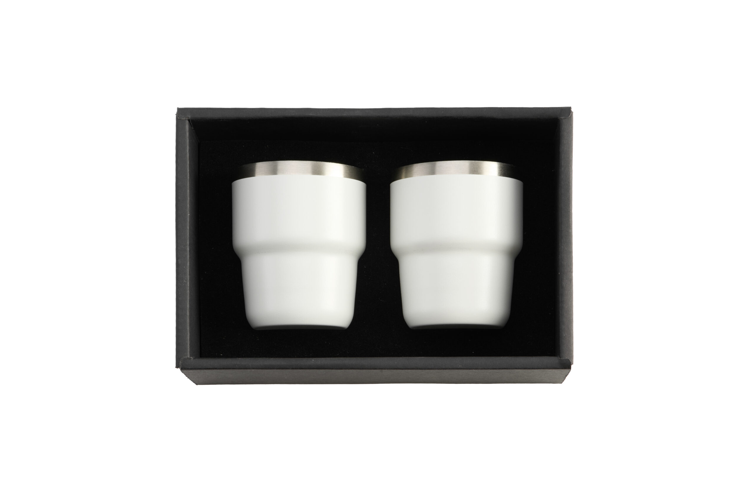 ESPRESSO STACKABLE – Stylish 80ml Double-Wall Stainless Steel Espresso Cups with Silver-Lined Lid & Premium Gift Box