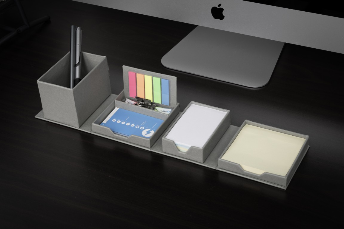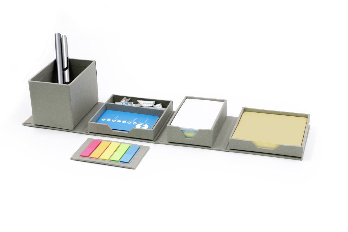 This cube unfolds into an all-in-one desk organiser, designed to keep everything