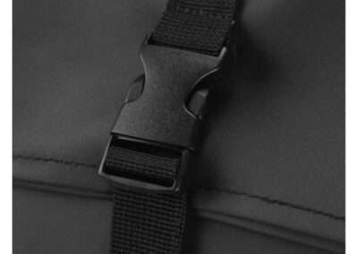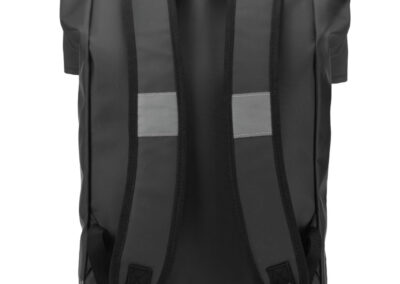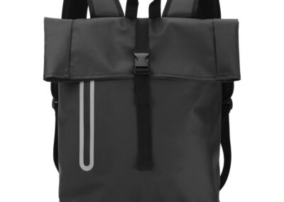 Material: Polyester | Item size: 400 x 550 x 150 mm | Weight: 0.380 kg, Roll-top backpacks made from high-density 600D waterproof polyester material are a solution that is both distinctive and functional when it comes to promotional gifts. These backpacks are manufactured from this material. When it comes to these kinds of backpacks, a black backpack that features a buckle fastening that can be adjusted, straps that are padded, and front zipper compartments that incorporate reflectors are an ideal option to consider. Because they are both visually pleasing and useful, they are extremely appealing to a wide variety of customers. This is because they are both functional and aesthetically pleasing.