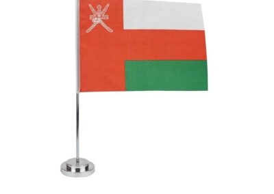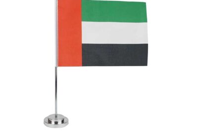 Size: 350mm length pole ( Non-adjustable ) | 70mm Dia, 17mm thick double layer silver plated plastic round base | Flag: 300 x 200 mm