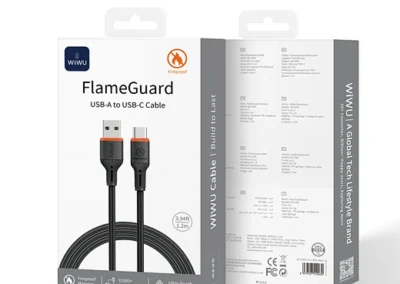 Charge with complete confidence. The WiWU FlameGuard Cable is meticulously engineered to solve the hidden dangers of traditional charging cables, such as ignition and overheating. Its core and braiding are crafted from advanced flame-retardant materials; even when exposed to high temperatures, it will not ignite and will self-extinguish upon leaving the flame source. Beyond its superior safety, the FlameGuard is built to last. The high-density nylon braid is incredibly durable and resistant to fraying, while remaining soft and flexible for easy handling and storage. It’s the ultimate combination of safety, durability, and everyday convenience.