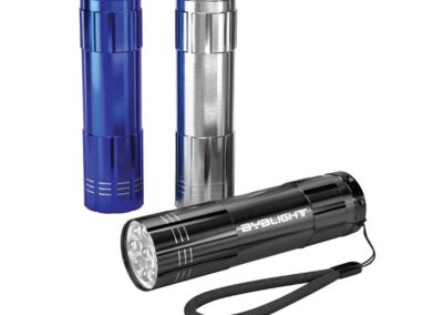 Material: Aluminum | Item Size: 82 x 24 mm | Item Weight: 0.075 kg People use flashlights all across the world. Promoting your brand using promotional flashlights is a smart move. These flashlights were constructed from sturdy aluminum metal. Due to its hardness, aluminum does not easily break. In addition to these advantages, it is also reasonably priced. There are numerous hues of these branded flashlights. These are also portable and lightweight. It also includes a useful string. As a result, you can take them wherever. However, these torches are of outstanding quality. The branding on these torches can be changed. Therefore, you can personalize your flashlights with your name or the emblem of your business.